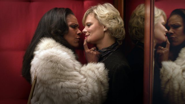 Audra McDonald as Sally (The Actress) and Martha Plimpton as Ruth (The Senator) in the film adaptation of Hello Again